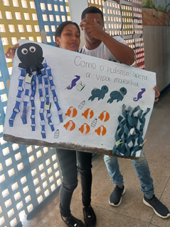O Ecobell realizou atos de sensibilização sobre a importância de se preservar os oceanos, nas salas de aula, com palestras e cartazes enquanto outro grupo realizava as pesagens dos materiais recicláve.